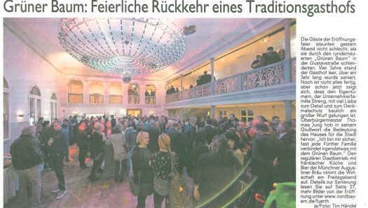 Die denkmalgeschützte Gaststätte hat für die Stadt eine sehr große Bedeutung. Viele Fürther gingen dort jahrzehntelang ein und aus, bis der Grüne Baum vier Jahre leer stand. Die Sanierung danach dauerte ein Jahr, um den alten Sandsteinquaderbau wertgemäß als „Herz der Gustavstraße“ wiederzubeleben.