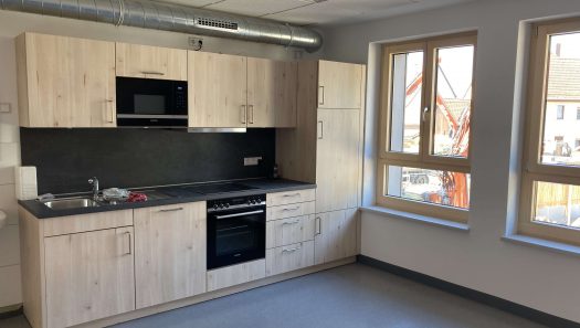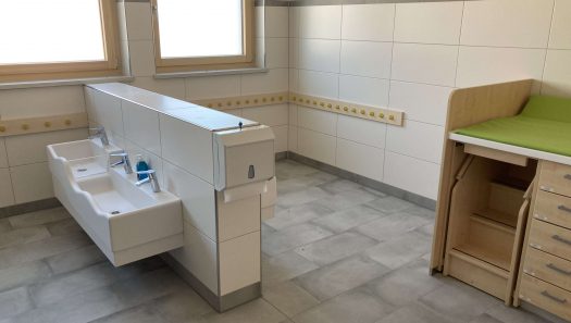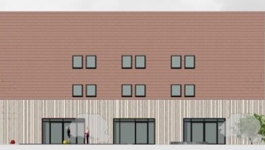 Neubau der Kindertagesstätte in Markt Erlbach in der Neue Straße 36, als Ersatz für die bestehende, renovierbedürftige Einrichtung. Der Neubau mit Außenanlage ist für rund 90 Kinder vorgesehen. Das Gebäude erhält eine Holzverkleidung und rote Dachziegelsteine, aufgrund der Denkmalpflege. An Stelle der ehemaligen Scheune (mit nahezu gleicher Gebäudetiefe und Höhe) ist jetzt die neue Kindertagesstätte geplant. Die Fertigstellung ist für Sommer 2021 geplant.